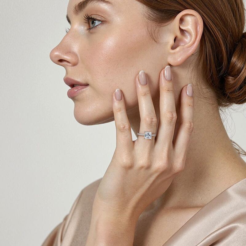 "Whisper of Forever" 2ct Princess Cut Side Stone Engagement Ring