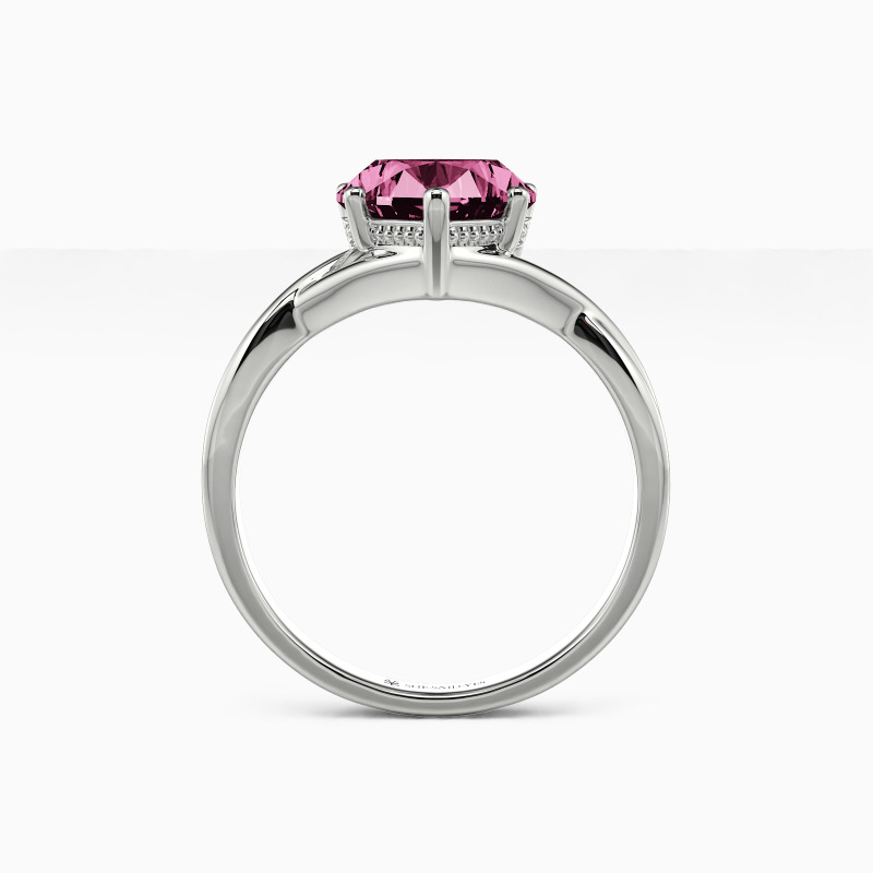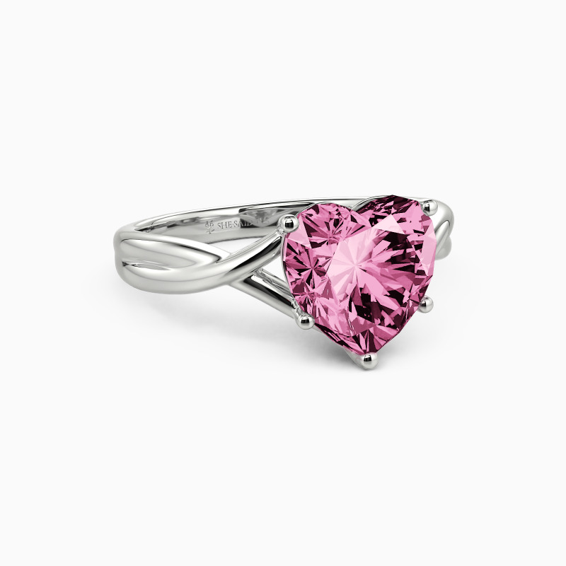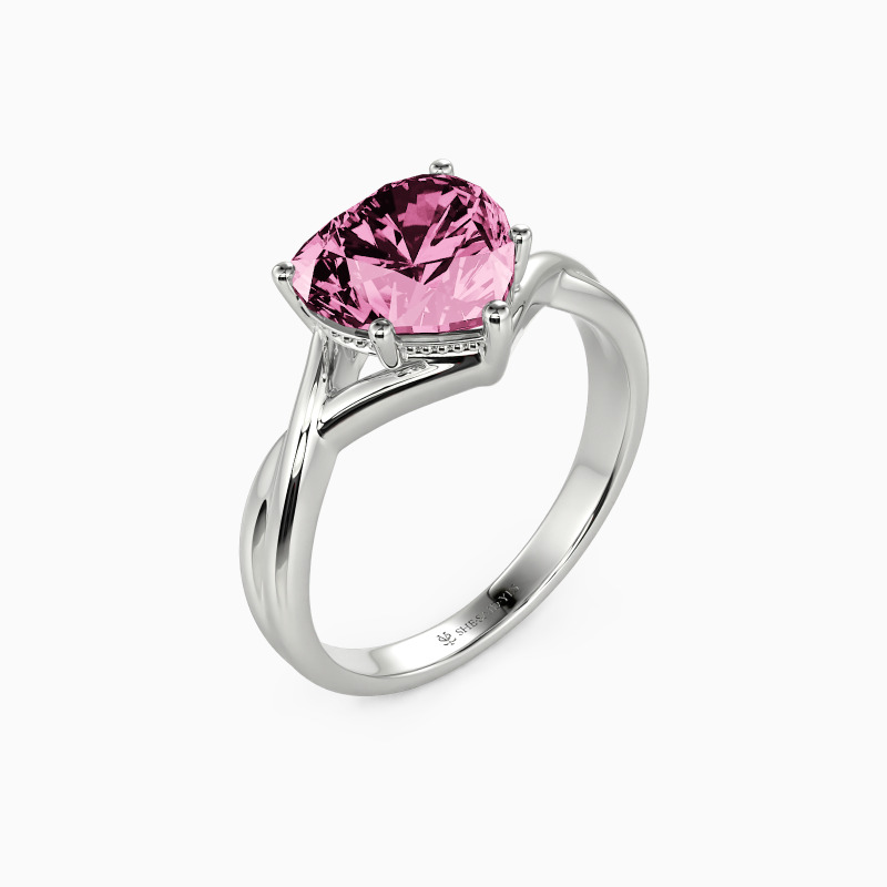 A carefully chosen solitaire engagement ring brightens your eyes immediately. It features a brilliant heart-shaped center stone set gorgeously on the gracefully twisted shank. And the polished finish and beadwork around the prongs doubling enhanced its shimmer. Commit to her with all your love and build your future together.