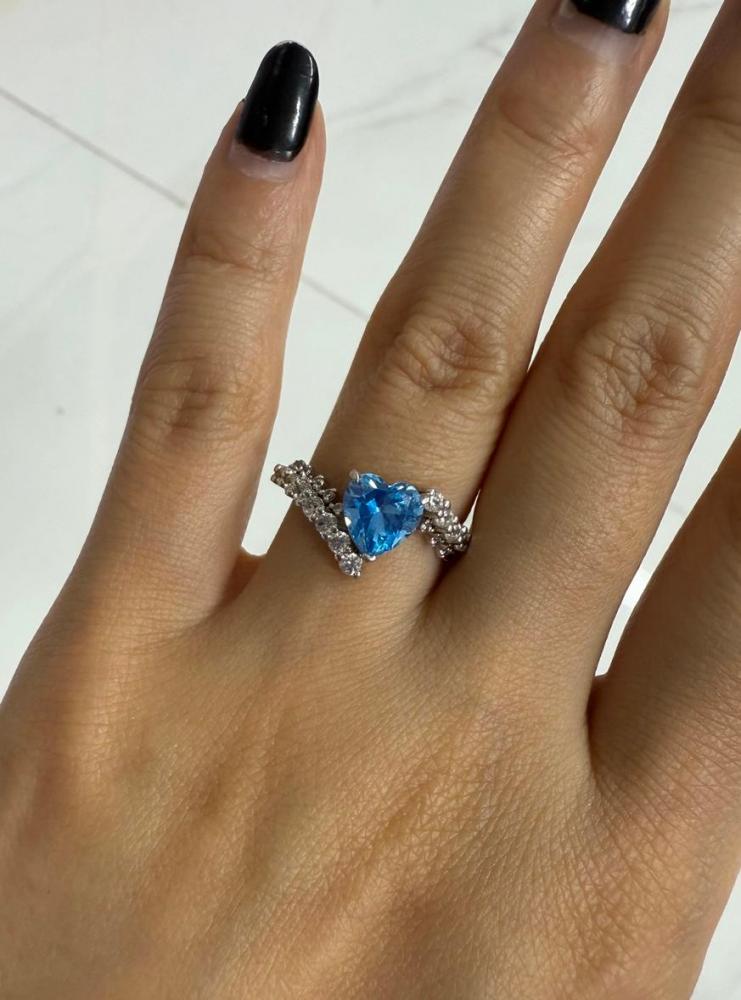 This enchanting side-stone engagement ring captures the essence of a whispered promise between two hearts. The heart-cut center stone, delicately cradled in a bypass design, symbolizes the deep connection and affection shared by two souls. The details of the basket create a sense of sophistication, while the gem-paved shank, additionally adorned with smaller accents, adds more glamour. This ring symbolizes the whispered confessions and heartfelt promises, making it a perfect choice for your special ring.