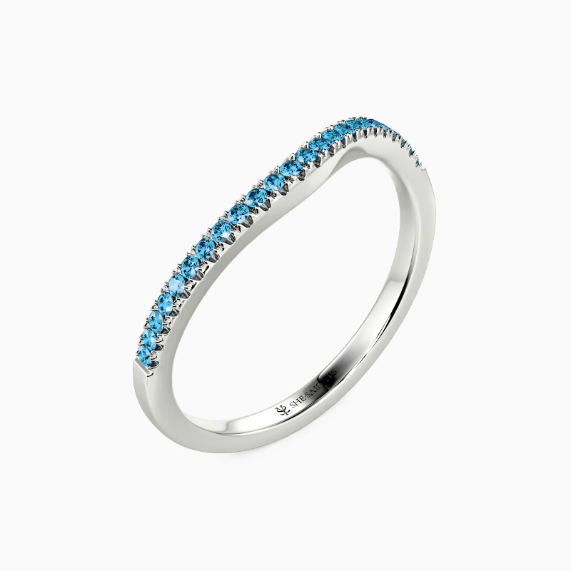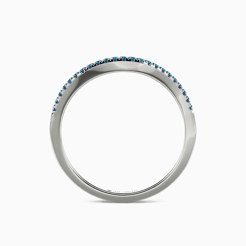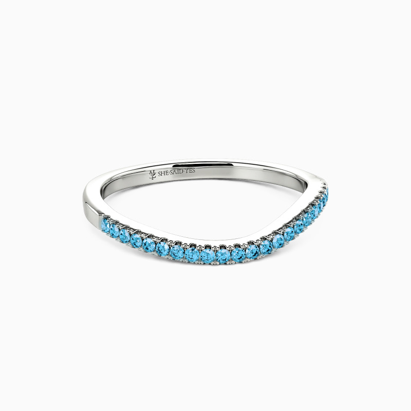 Classical and dainty. Crafted with a polished metal of your choice, this wedding band is brightened by a row of shimmering round stones on a subtle waved shank. The elegant piece you can wear solo or team with other accessories from SHE·SAID·YES.