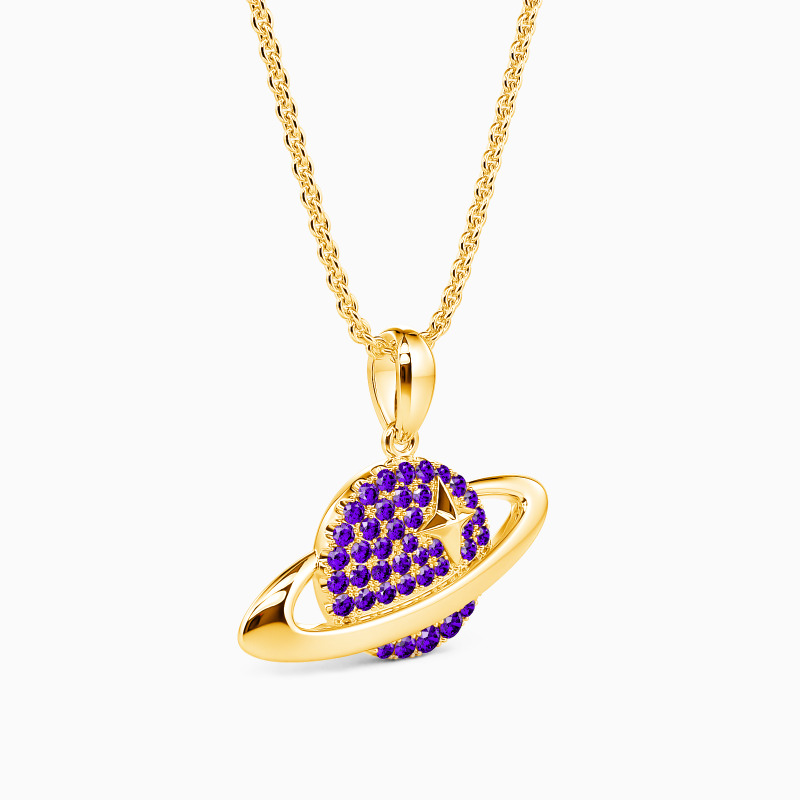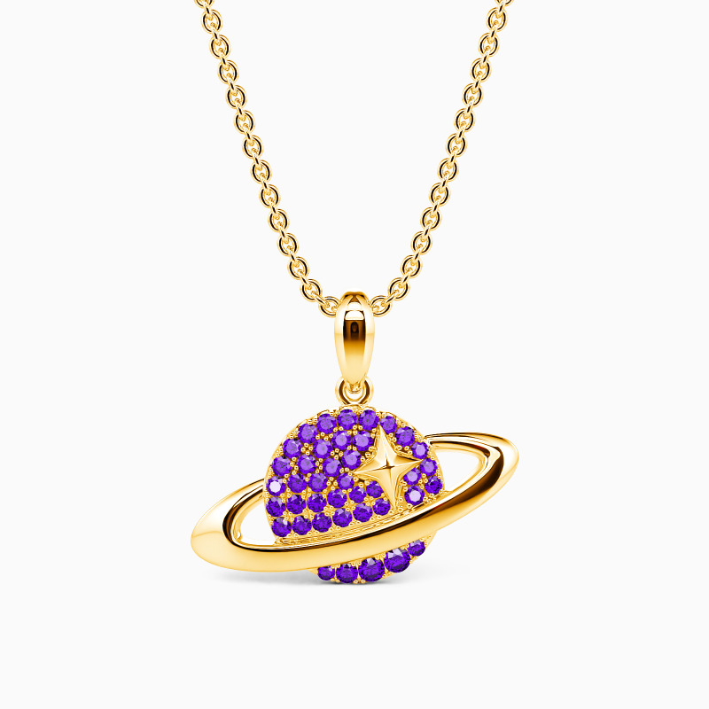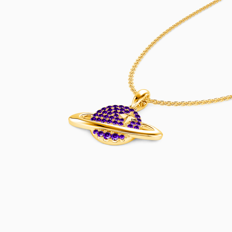 Designed in the pattern of a bright planet, this pendant is sophisticated and fanciful. It features a shimmering stone-paved planet with a precious star on it surrounded by a buffed circle system for extra gloss. A piece blending with whimsical design and shiny luster is an unmissable gift for anyone.