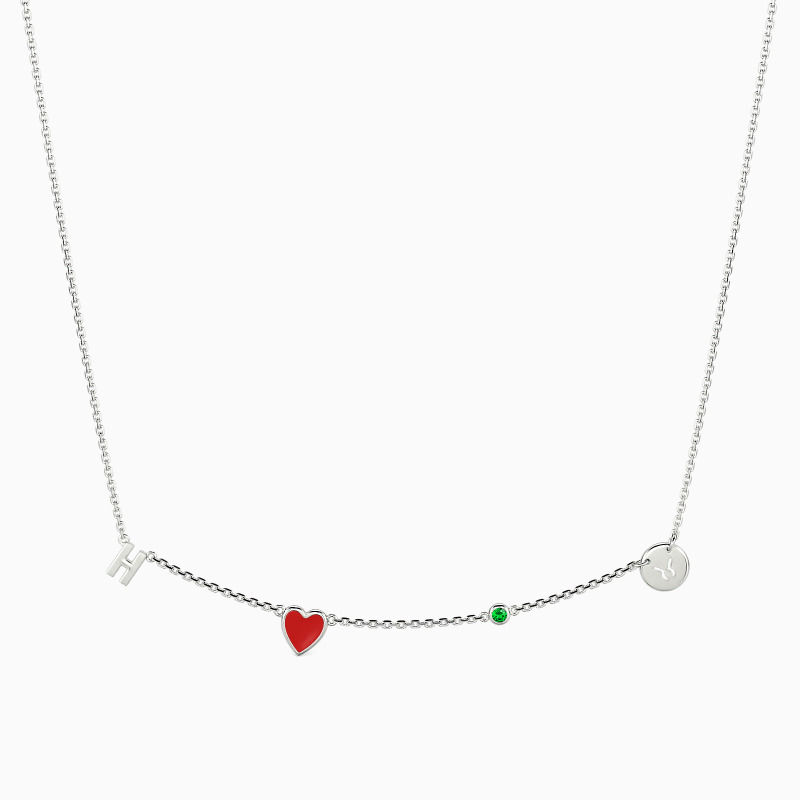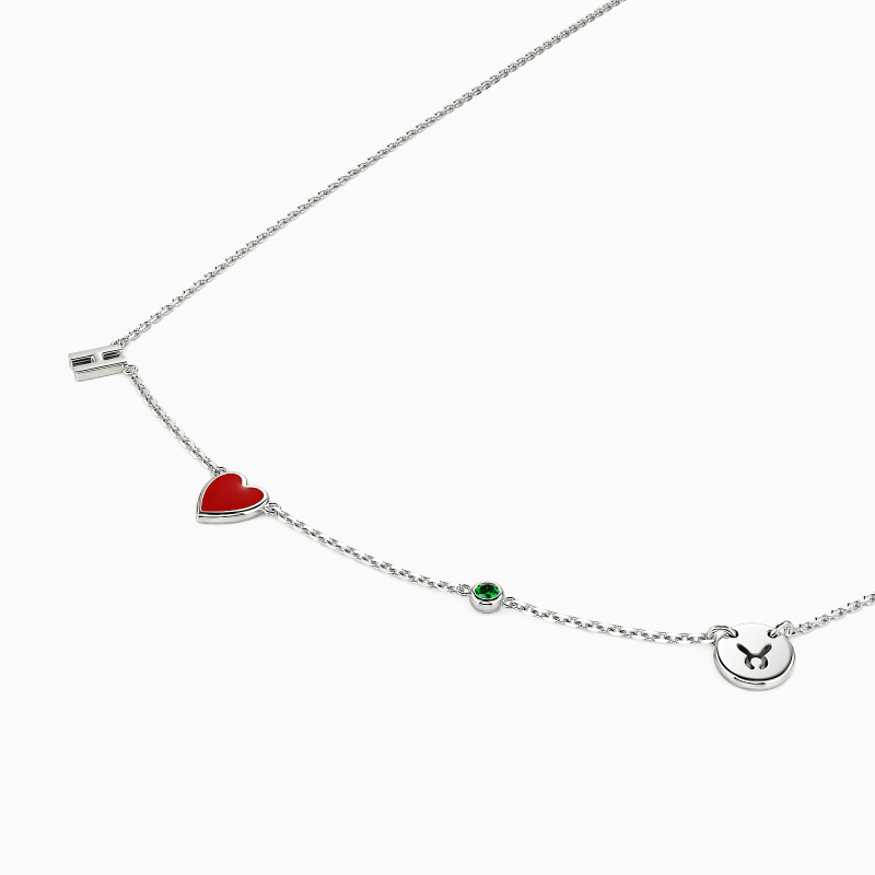 Show your loved one their place in your heart with this charming necklace. Featuring their initial alongside a heart charm, a round gemstone elegantly displayed in a bezel setting shines beautifully. A zodiac symbol charm representing their birth sign completes the meaningful design. Subtle yet personalized, this necklace makes a special gift worn close to the heart.