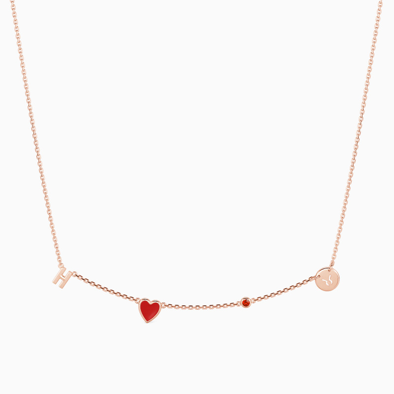 Show your loved one their place in your heart with this charming necklace. Featuring their initial alongside a heart charm, a round gemstone elegantly displayed in a bezel setting shines beautifully. A zodiac symbol charm representing their birth sign completes the meaningful design. Subtle yet personalized, this necklace makes a special gift worn close to the heart.