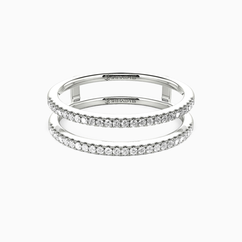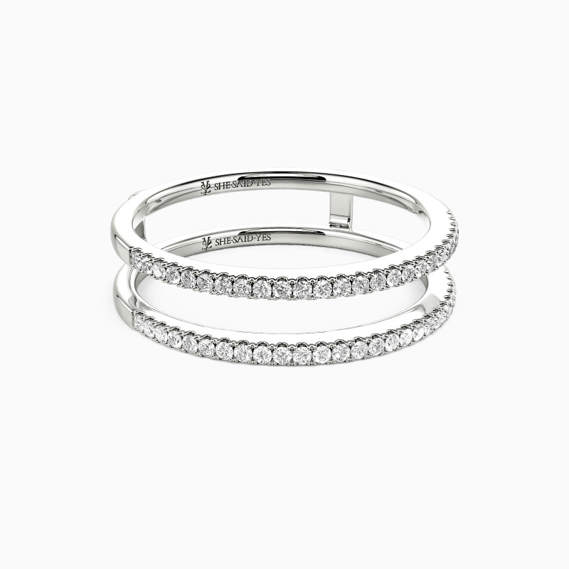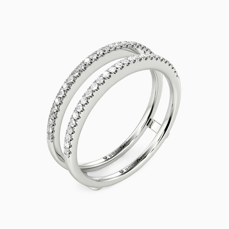 This classic ring enhancer embodies minimalist elegance and versatility. Its refined design features a delicate pavé setting that adds a subtle shimmer. The clean lines and timeless style make it a perfect complement to various ring styles. Its understated beauty enhances without overpowering, making it a versatile choice for any occasion.
