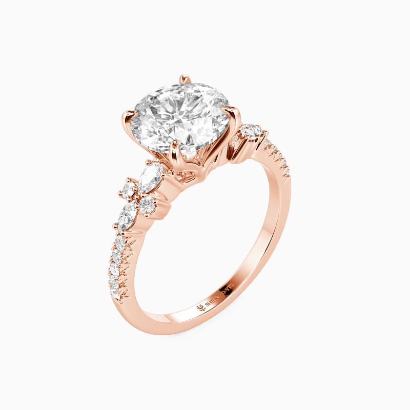 "You Are My Always" Round Cut Cluster Side Stone Engagement Ring