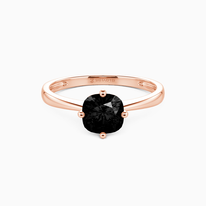 This brilliant Cushion cut solitaire features clean, finest lines and exquisitely tapered shoulders arching toward the center stone. With this solitaire design, you will forever be in that shine state of mind.