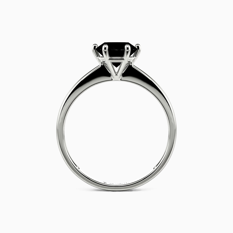 This brilliant six-prong solitaire features clean, finest lines and exquisitely tapered shoulders arching toward the center stone. With this solitaire design, you will forever be in that shine state of mind.