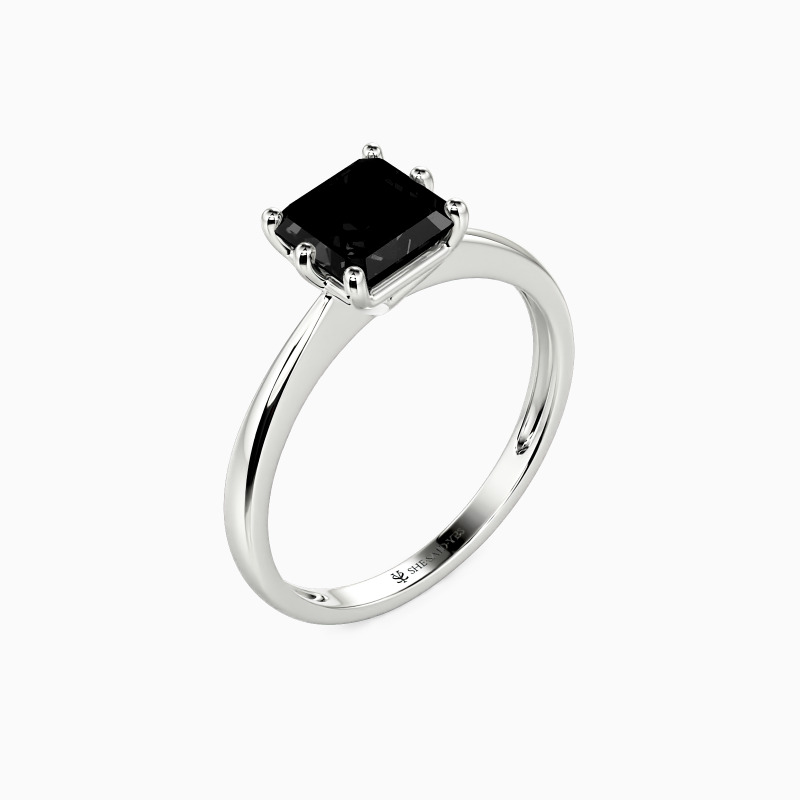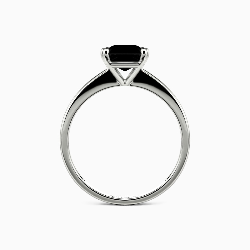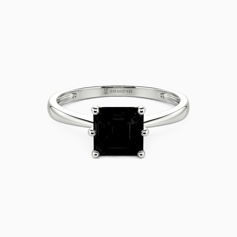 This brilliant Asscher cut solitaire features clean, finest lines and exquisitely tapered shoulders arching toward the center stone. With this solitaire design, you will forever be in that shine state of mind.