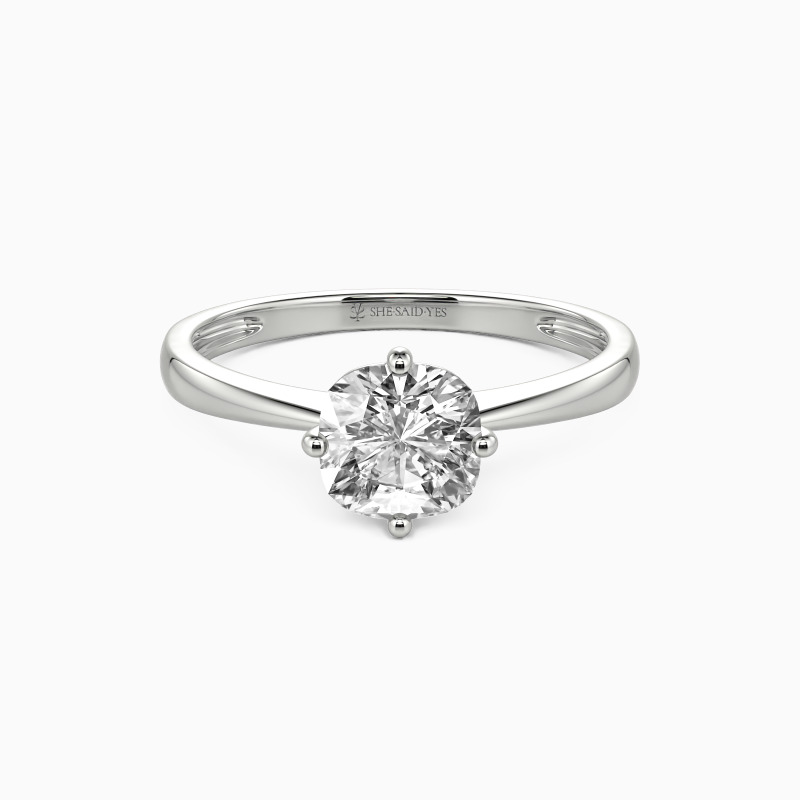 This brilliant Cushion cut solitaire features clean, finest lines and exquisitely tapered shoulders arching toward the center stone. With this solitaire design, you will forever be in that shine state of mind.