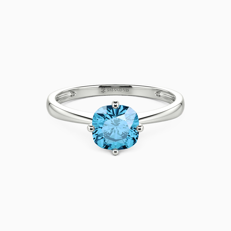 This brilliant Cushion cut solitaire features clean, finest lines and exquisitely tapered shoulders arching toward the center stone. With this solitaire design, you will forever be in that shine state of mind.