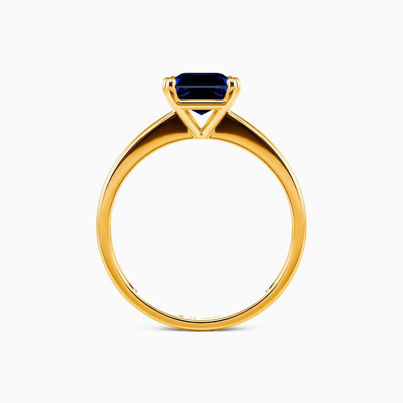 This brilliant Asscher cut solitaire features clean, finest lines and exquisitely tapered shoulders arching toward the center stone. With this solitaire design, you will forever be in that shine state of mind.