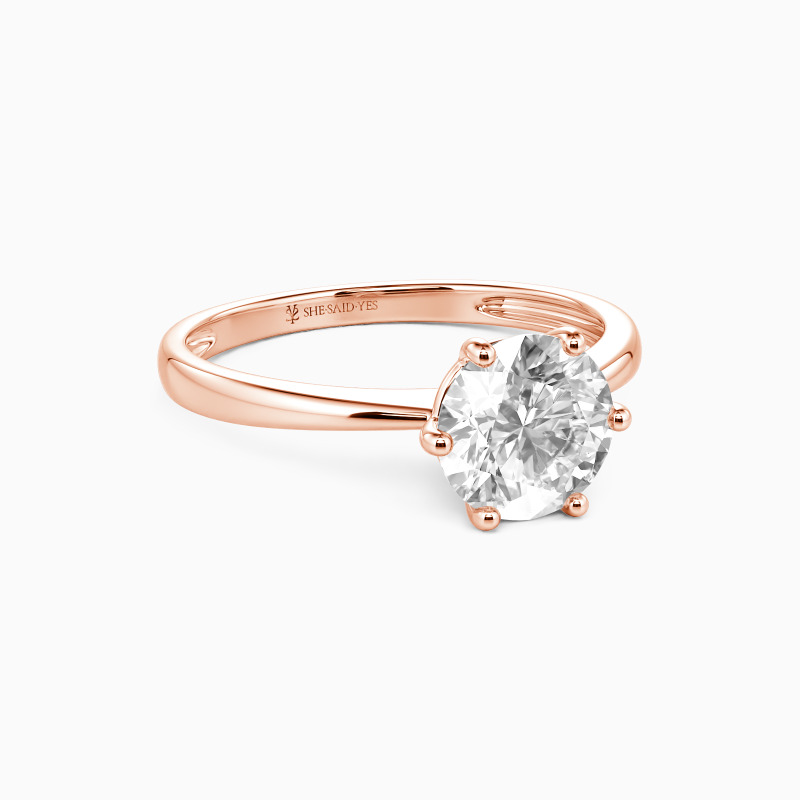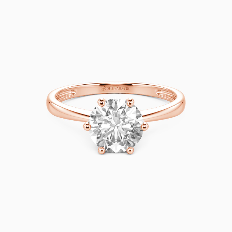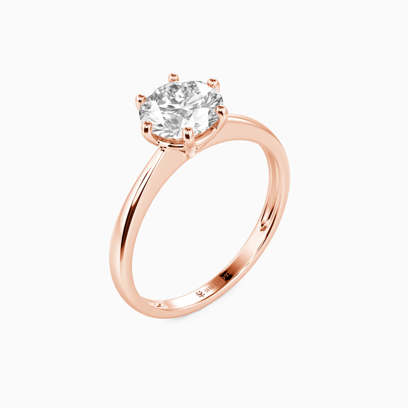 This brilliant six-prong solitaire features clean, finest lines and exquisitely tapered shoulders arching toward the center stone. With this solitaire design, you will forever be in that shine state of mind.