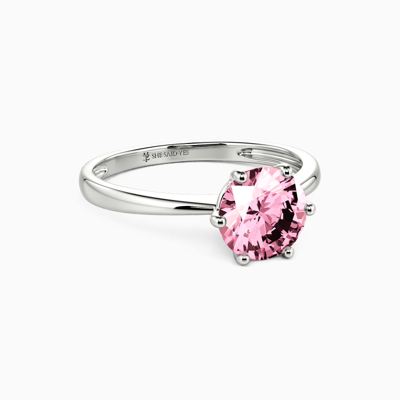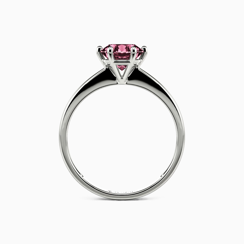 This brilliant six-prong solitaire features clean, finest lines and exquisitely tapered shoulders arching toward the center stone. With this solitaire design, you will forever be in that shine state of mind.