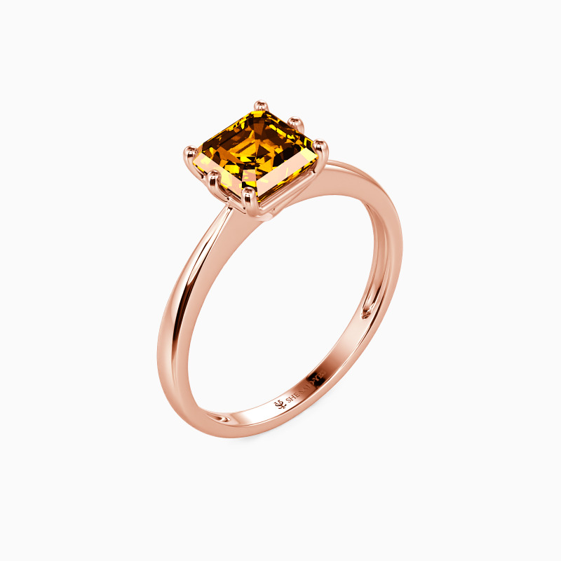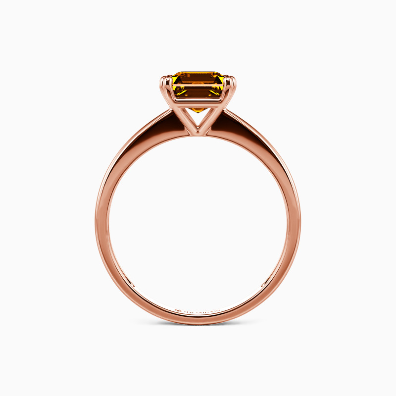 This brilliant Asscher cut solitaire features clean, finest lines and exquisitely tapered shoulders arching toward the center stone. With this solitaire design, you will forever be in that shine state of mind.