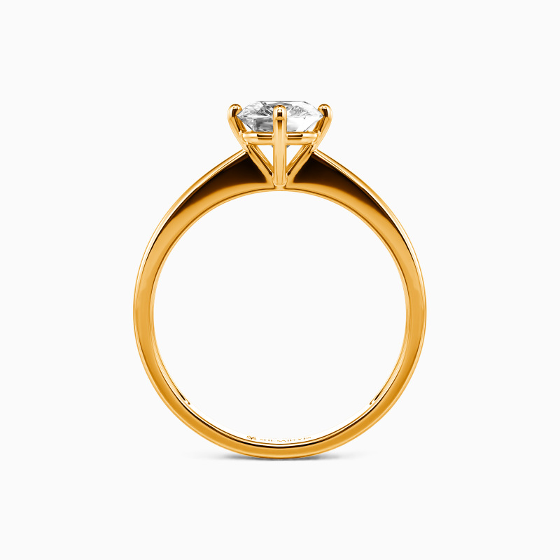 This brilliant Cushion cut solitaire features clean, finest lines and exquisitely tapered shoulders arching toward the center stone. With this solitaire design, you will forever be in that shine state of mind.