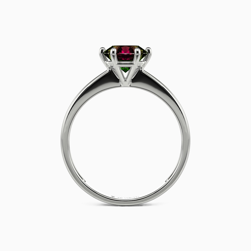 This brilliant six-prong solitaire features clean, finest lines and exquisitely tapered shoulders arching toward the center stone. With this solitaire design, you will forever be in that shine state of mind.