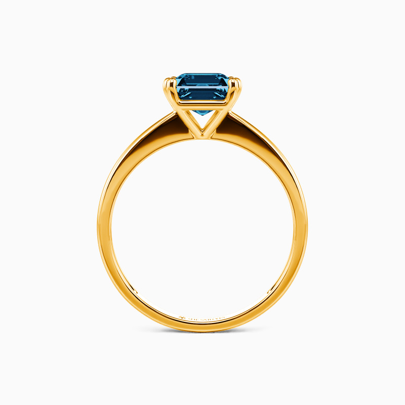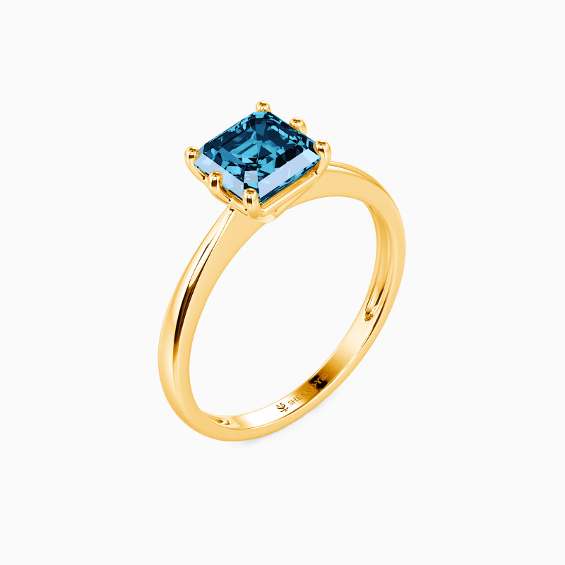 This brilliant Asscher cut solitaire features clean, finest lines and exquisitely tapered shoulders arching toward the center stone. With this solitaire design, you will forever be in that shine state of mind.
