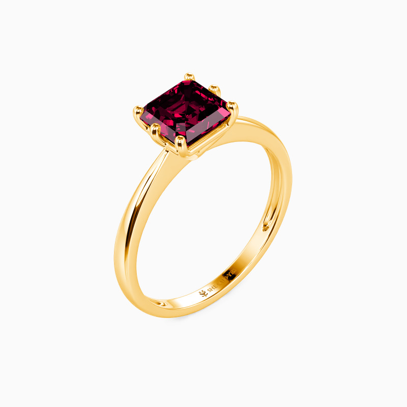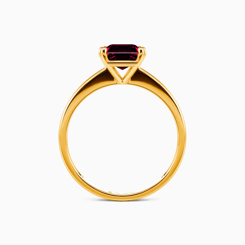 This brilliant Asscher cut solitaire features clean, finest lines and exquisitely tapered shoulders arching toward the center stone. With this solitaire design, you will forever be in that shine state of mind.