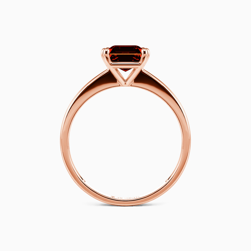 This brilliant Asscher cut solitaire features clean, finest lines and exquisitely tapered shoulders arching toward the center stone. With this solitaire design, you will forever be in that shine state of mind.