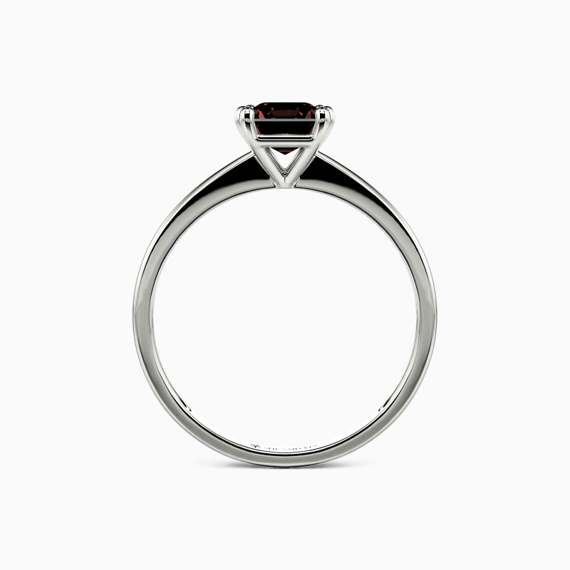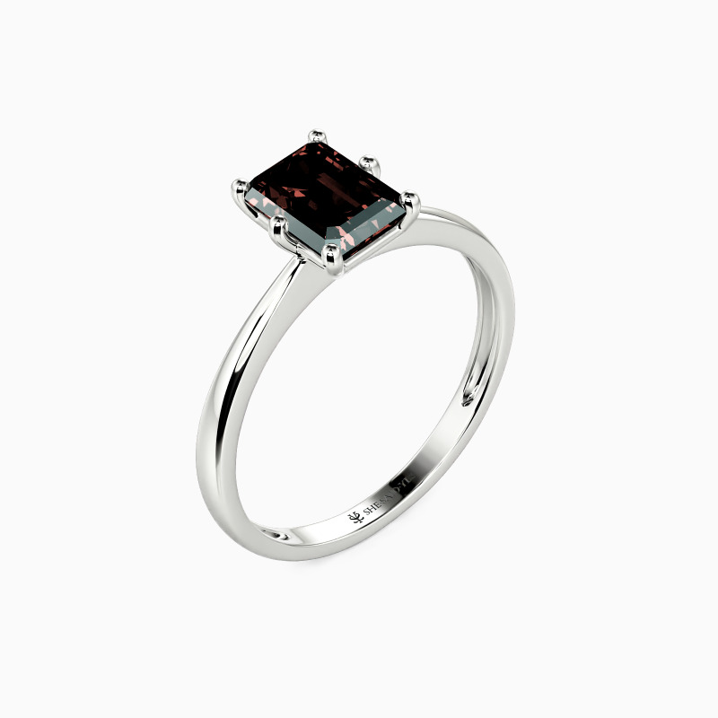 This brilliant Emerald cut solitaire features clean, finest lines and exquisitely tapered shoulders arching toward the center stone. With this solitaire design, you will forever be in that shine state of mind.