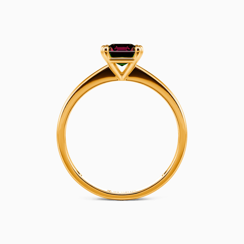 This brilliant Emerald cut solitaire features clean, finest lines and exquisitely tapered shoulders arching toward the center stone. With this solitaire design, you will forever be in that shine state of mind.