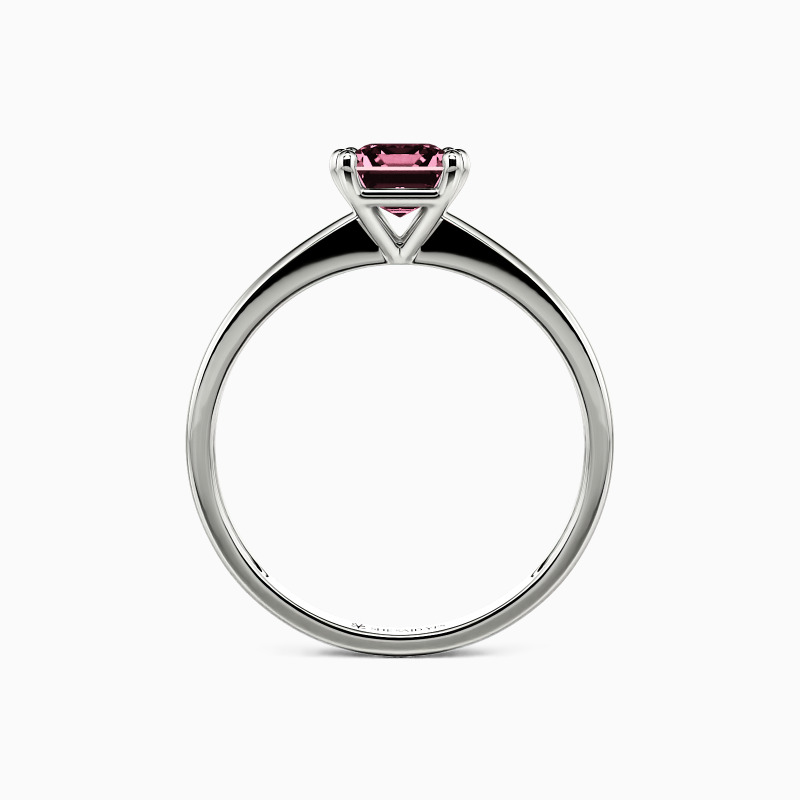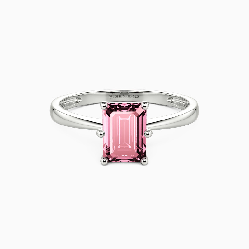 This brilliant Emerald cut solitaire features clean, finest lines and exquisitely tapered shoulders arching toward the center stone. With this solitaire design, you will forever be in that shine state of mind.