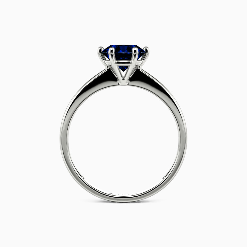 This brilliant six-prong solitaire features clean, finest lines and exquisitely tapered shoulders arching toward the center stone. With this solitaire design, you will forever be in that shine state of mind.