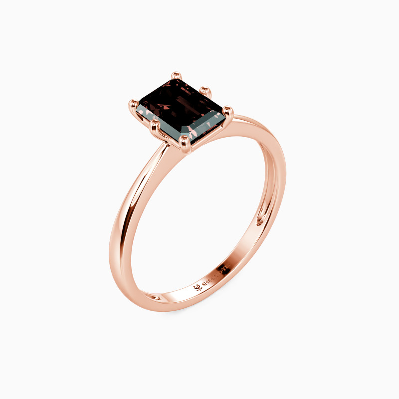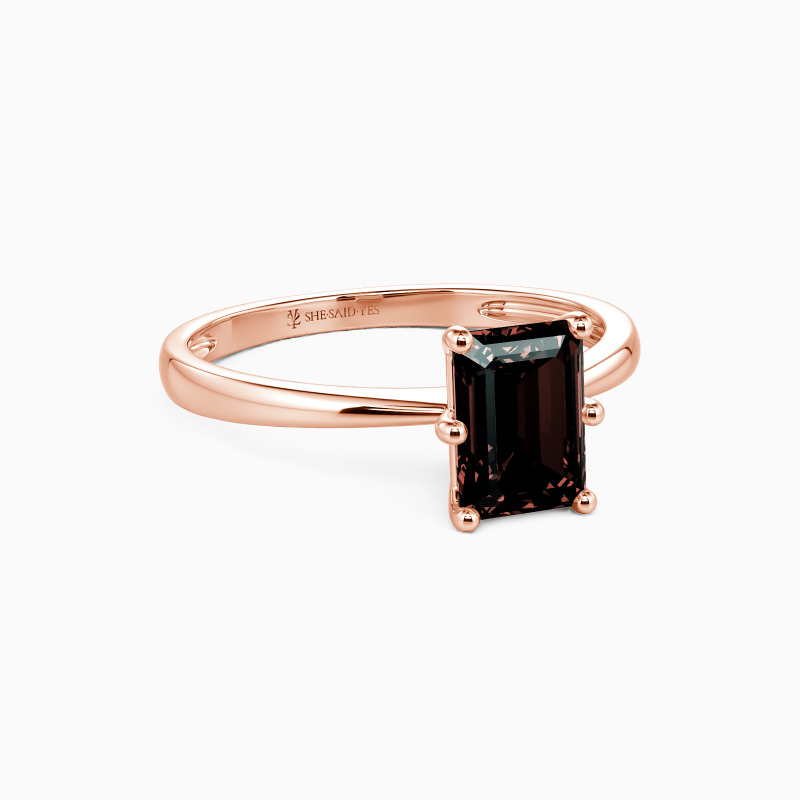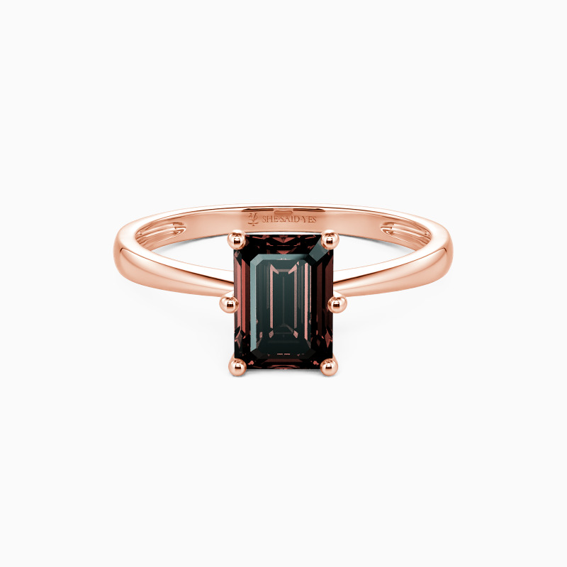 This brilliant Emerald cut solitaire features clean, finest lines and exquisitely tapered shoulders arching toward the center stone. With this solitaire design, you will forever be in that shine state of mind.