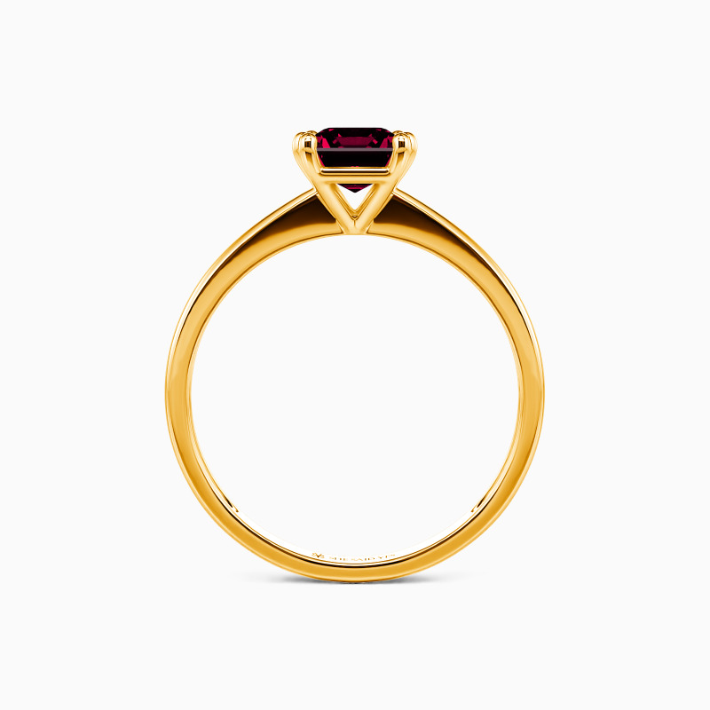 This brilliant Emerald cut solitaire features clean, finest lines and exquisitely tapered shoulders arching toward the center stone. With this solitaire design, you will forever be in that shine state of mind.