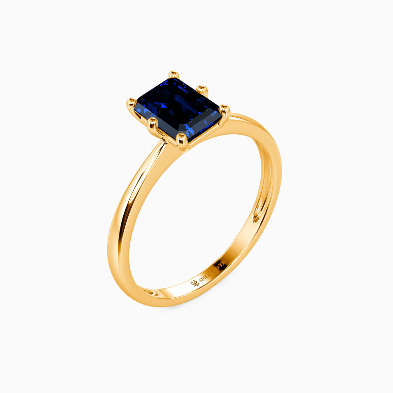 This brilliant Emerald cut solitaire features clean, finest lines and exquisitely tapered shoulders arching toward the center stone. With this solitaire design, you will forever be in that shine state of mind.