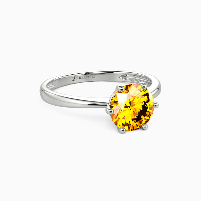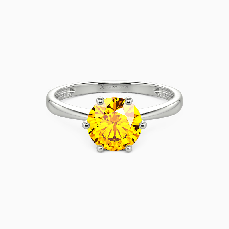 This brilliant six-prong solitaire features clean, finest lines and exquisitely tapered shoulders arching toward the center stone. With this solitaire design, you will forever be in that shine state of mind.