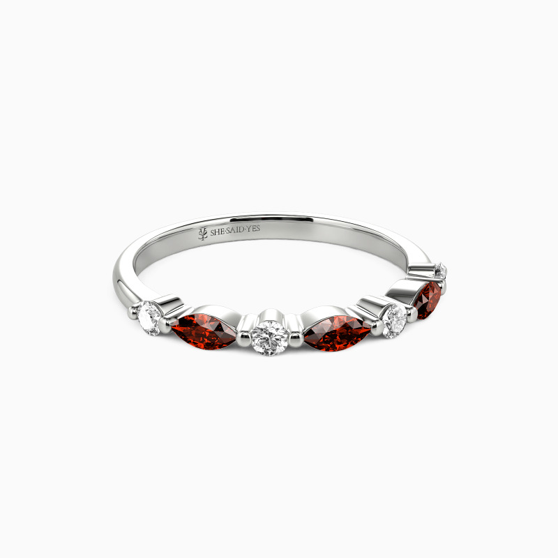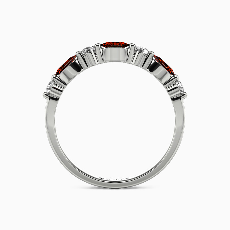 Elegant and captivating, this classic wedding band is an ideal complement to engagement rings. It features a harmonious blend of round and marquise-cut stones, meticulously set in shared prongs along the polished shank. The alternating arrangement of these stones creates a mesmerizing pattern that exudes a radiant sparkle from all perspectives. This band not only enhances your allure but also adds an enchanting shimmer to every gesture.