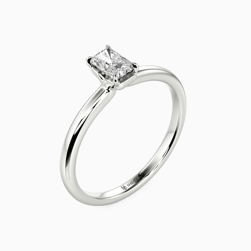 Effortlessly elegant, this radiant-cut solitaire engagement ring captivates with its clean lines and brilliant sparkle. The high-polished shank exudes modern sophistication, while the open bridge design adds an unexpected touch of lightness. A perfect harmony of classic beauty and sleek minimalism, this ring celebrates love in its purest, most luminous form.