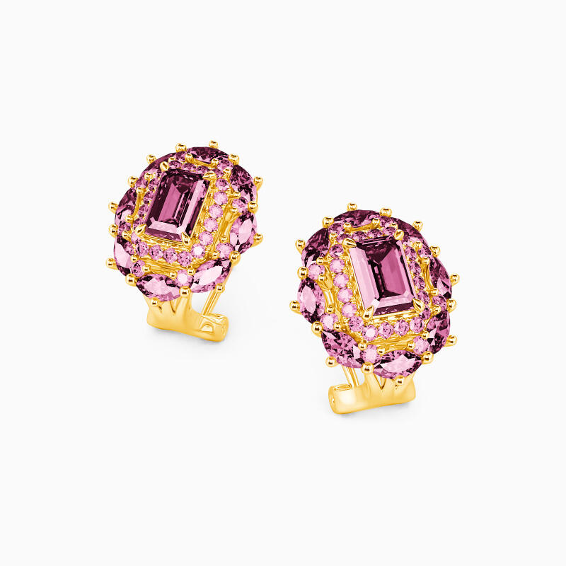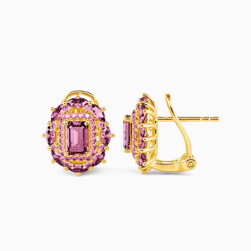 A luxurious look every lady will adore, these stud earrings are a fabulous choice anytime. Vintage-inspired, they feature a shimmering emerald-cut stone wrap in a halo frame of round-cut accents. And extra marquise-cut stones further enhance the appearance. This romantic choice is sure to become a treasured keepsake.