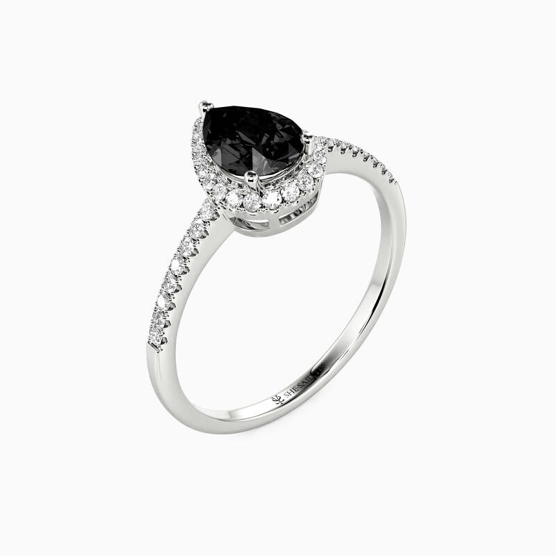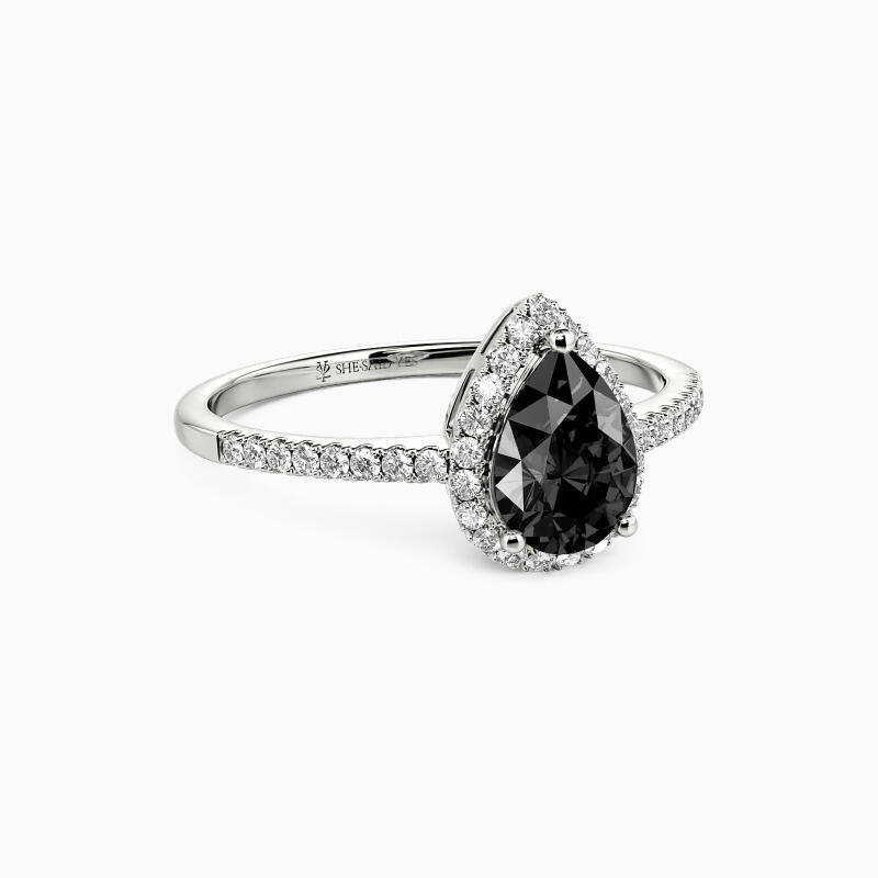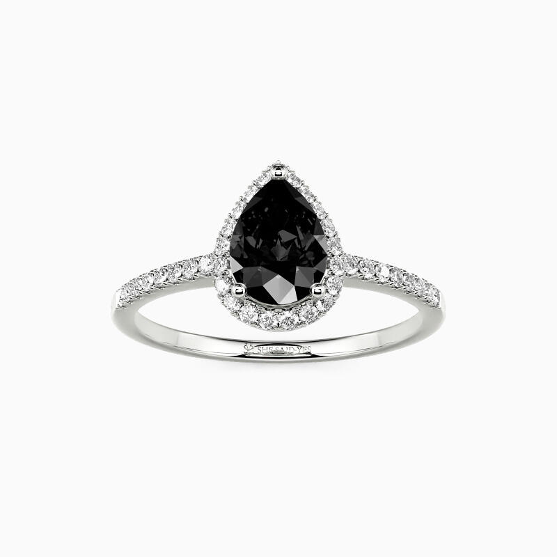 With an exceptional level of design and shimmer, this halo engagement ring is an elevated choice for your beloved. A pear-cut center stone is wrapped in a halo frame to shine your love. It is further enhanced by a paved shank, portraying a feminine and graceful charm without overdone. Eye to eye, cheek to cheek, all I want is you sleeping next to me.