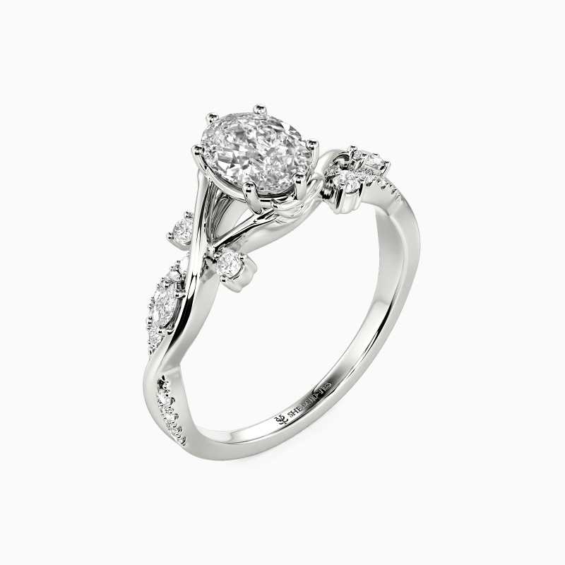 "Eternal Garden" Oval Cut Side Stone Engagement Ring