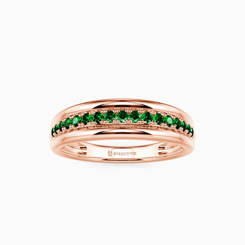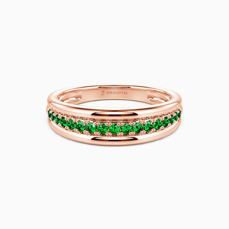 A distinguished wedding band he'll treasure. This style showcases a row of pavéd round-cut stones glistening across the center. And the polished borders complete the sparkling design. It is certain to be a perfect choice for the man you adore.