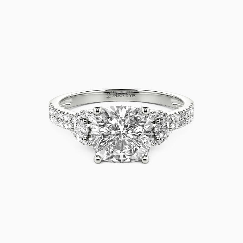 "Grow Old with Me" 2ct Cushion Cut Side Stone Engagement Ring