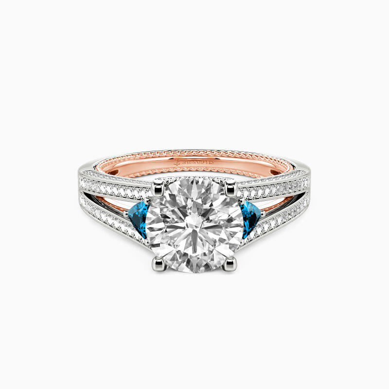This unique engagement ring is the perfect way to show her your love and devotion. A round-cut stone dazzles in the center of the split shank to attract your attention. Two rows of sparkling accents dance down the delicately shank to raise the unrivaled and stunning beauty. All the detailed elements incorporate to bring her surprise. Its enchanting and romantic appeal is sure to capture her heart the moment she sees it.