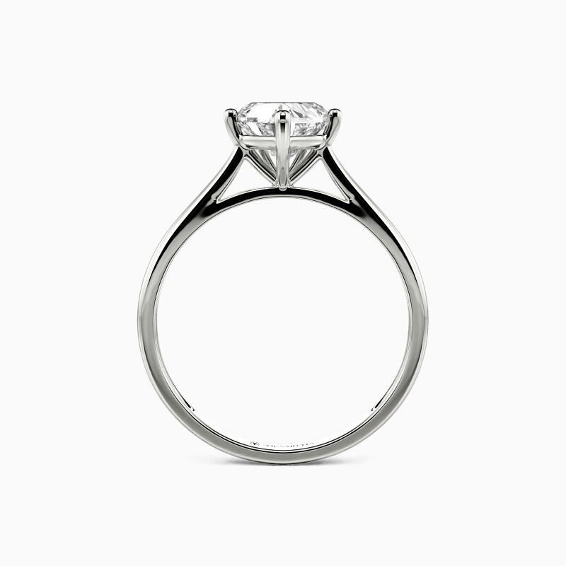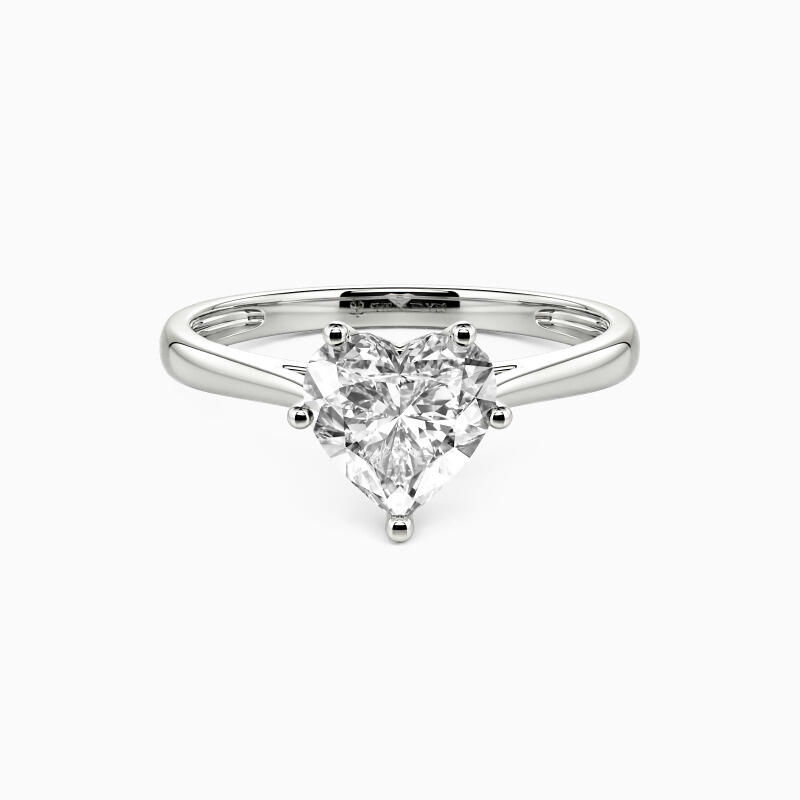 The setting gives a heart-cut stone a classic look and allows more light to contact the stone, enhancing its brilliance. Give this ring to your beloved one to promise to be with her forever.
