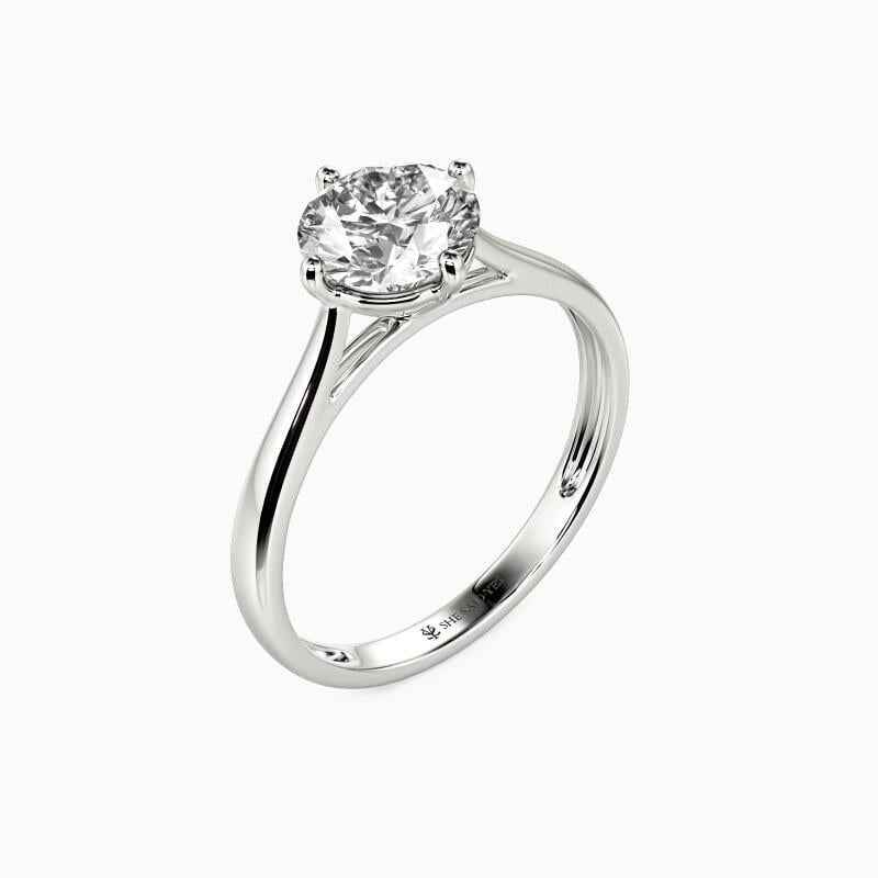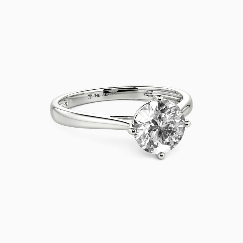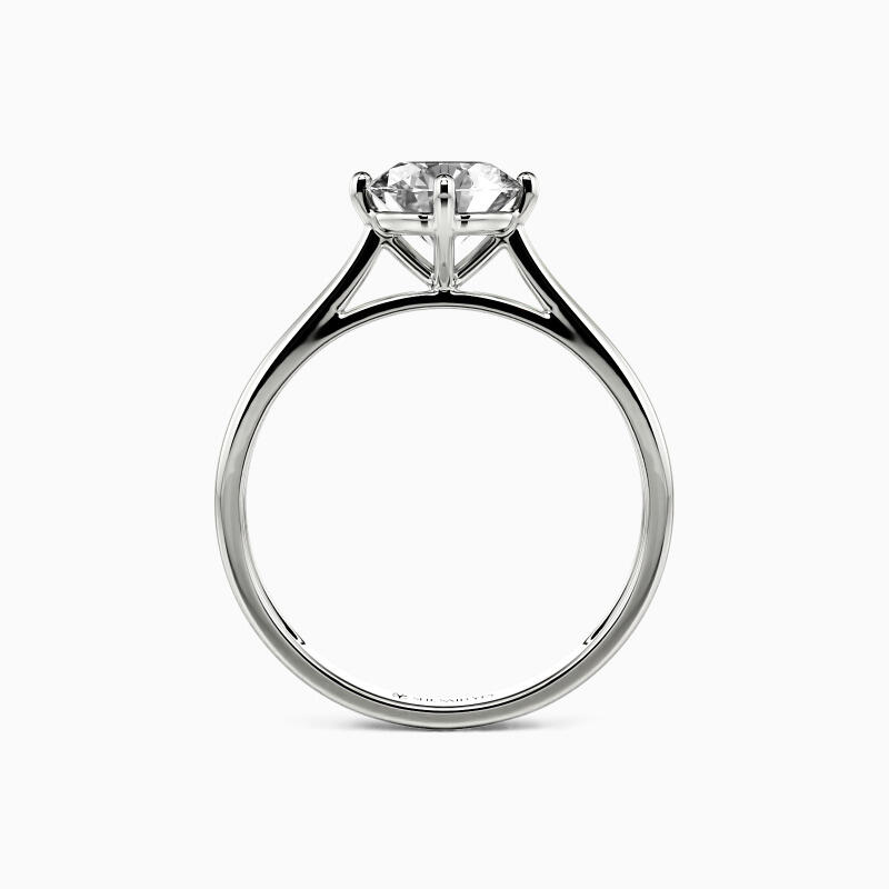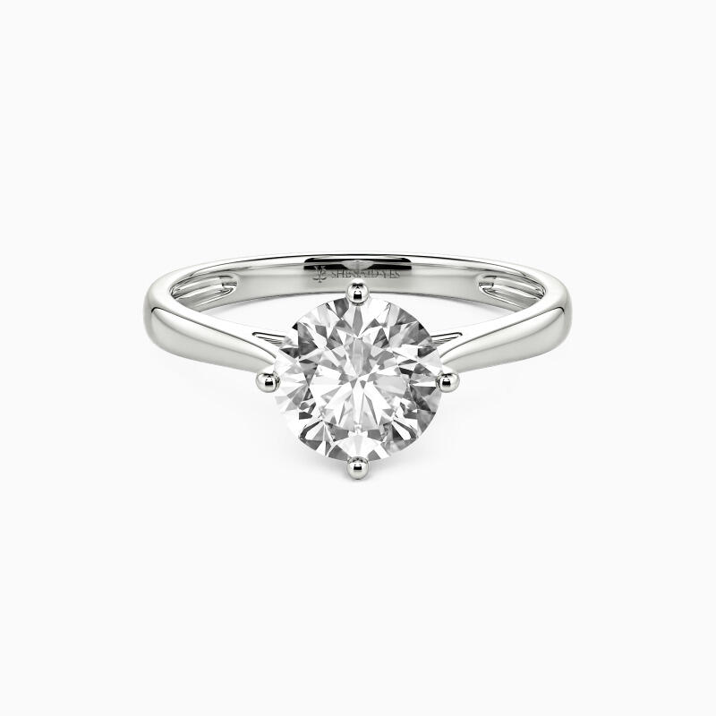 The four-prong setting gives a round-cut stone a classic look and allows more light to contact the stone, enhancing its brilliance. Give this ring to your beloved one to promise to be with her forever.