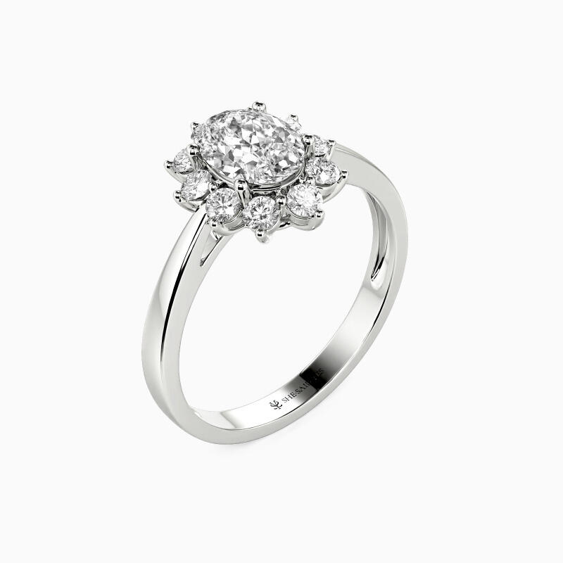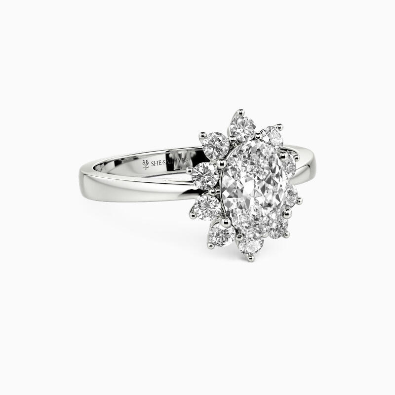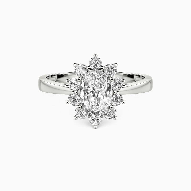 This halo engagement ring features an oval center stone clustered by ten sparkling round-cut accents in a prong setting. And with a polished tapered shank, the dazzling halo gives a magnificent look to the whole ring. You brighten my world when I’m blue and gray, and all my fears fade away. You are my forever sunshine.