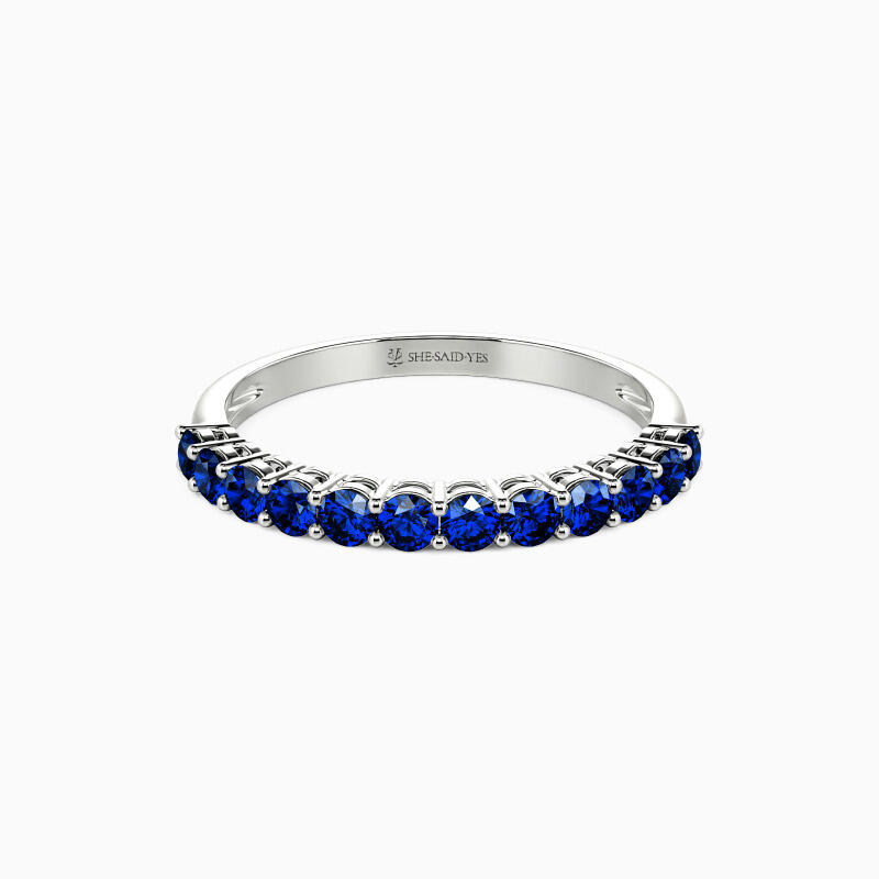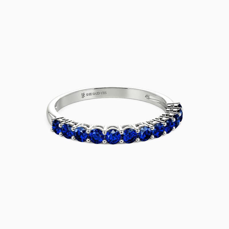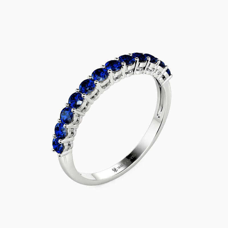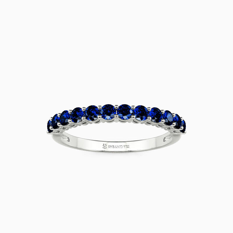 Beautifully studded in a shared prong setting is twelve shimmering stones in a row, sparkling halfway along the shank. And the other half lustrous shank permits the whole ring to radiate more lights from all angles. Wearing it alone is enough to unveil your appeal with this classic and timeless design.