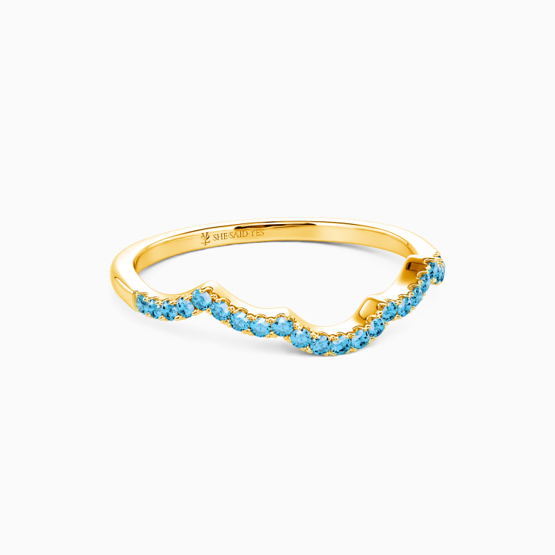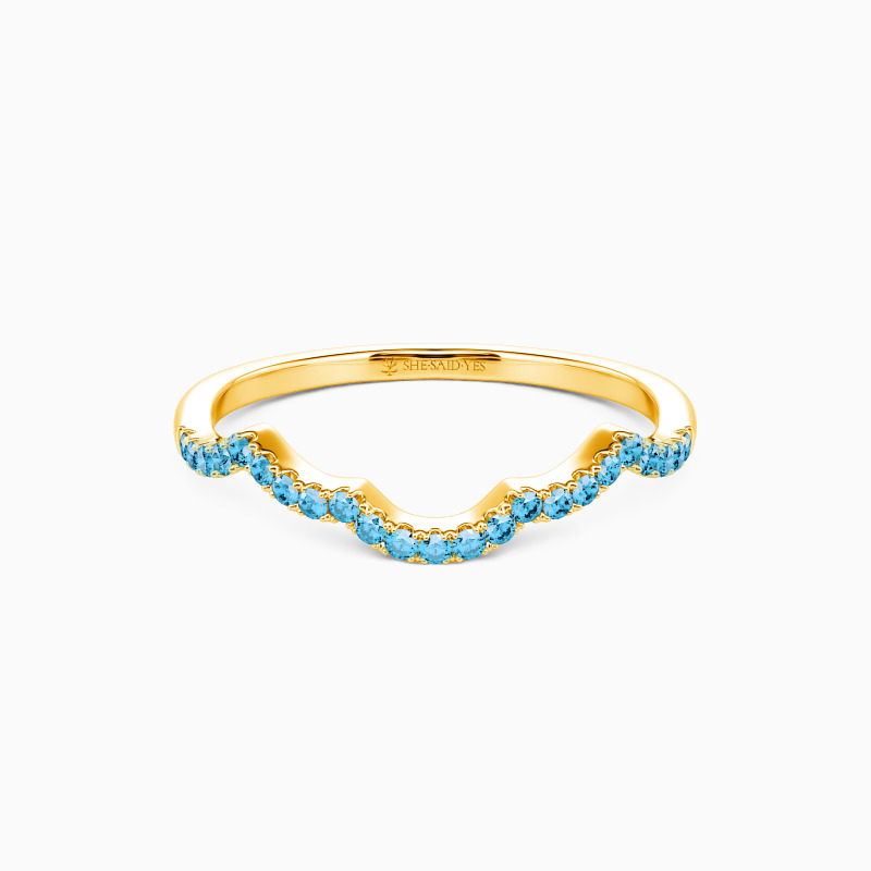 This classic wedding band dazzles you with a row of sparkling round accents in a pavé setting. Further enhancing the overall look is a delicately curved shank. This design allows it to stack with your engagement ring. Or you can wear it alone in daily life to show understated appeal.
