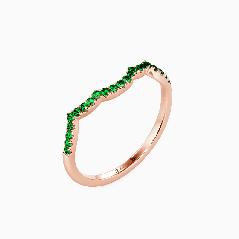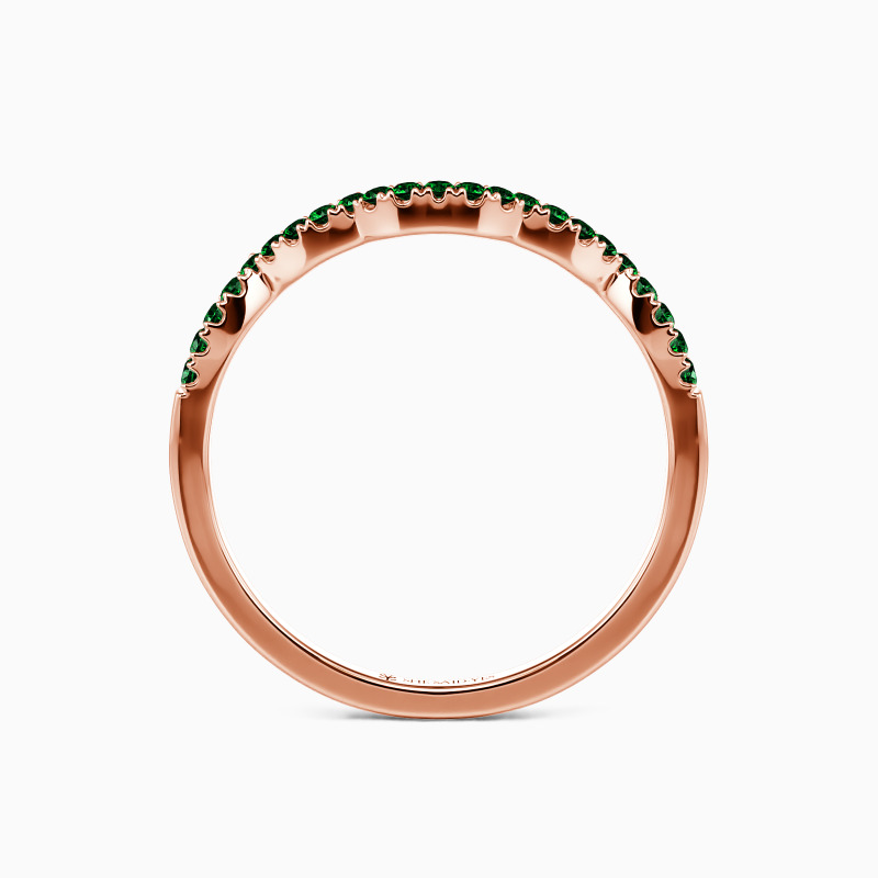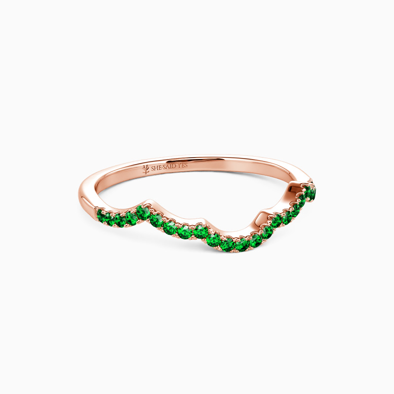 This classic wedding band dazzles you with a row of sparkling round accents in a pavé setting. Further enhancing the overall look is a delicately curved shank. This design allows it to stack with your engagement ring. Or you can wear it alone in daily life to show understated appeal.