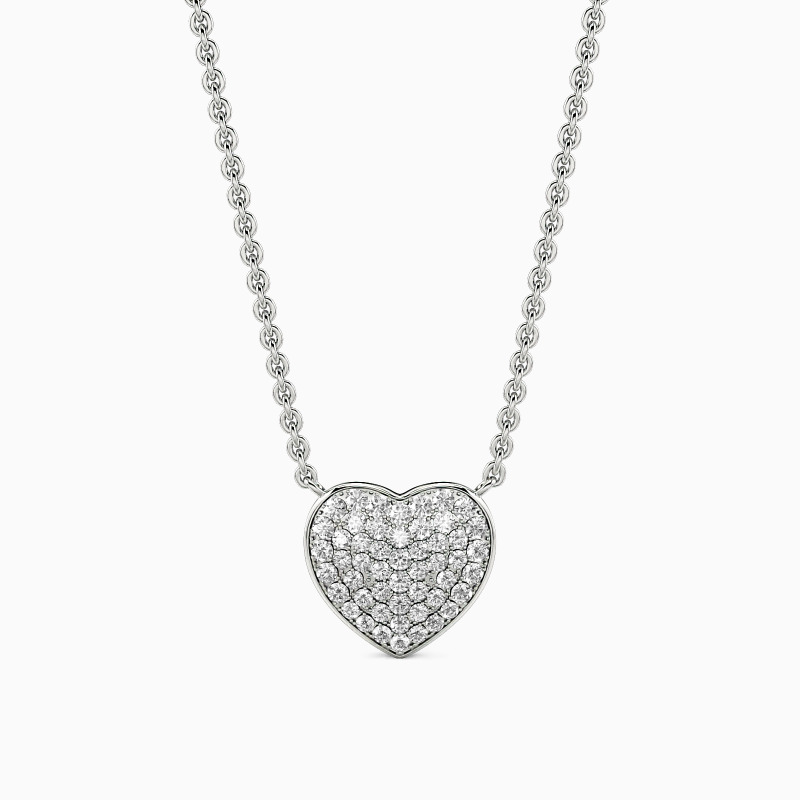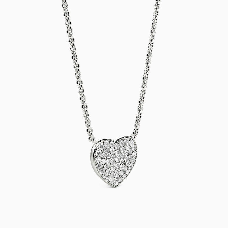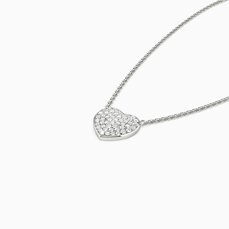 Let this heart shine superlative beauty when you slip on this exquisite necklace. Several accents glisten and gleam in a pavé setting to show your glamour. Ideal for surprising your beloved one for no reason, this necklace also makes an ideal personal indulgence.