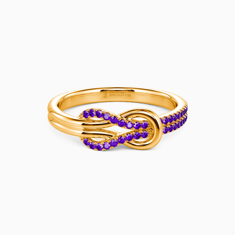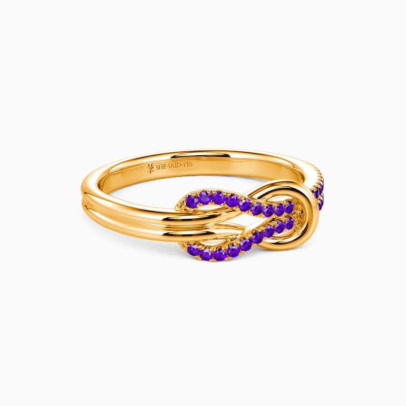 Captivates your attention with this interlocked shank design. This classic wedding band features a polished shank attached with another shimmering shank. And embellished by round-cut accents studded in a pavé setting, this ring is the best witness of everlasting love. You'll always be the one for me, and I'll always be around you.