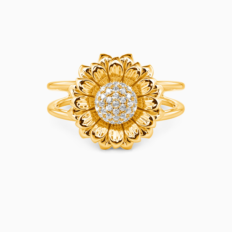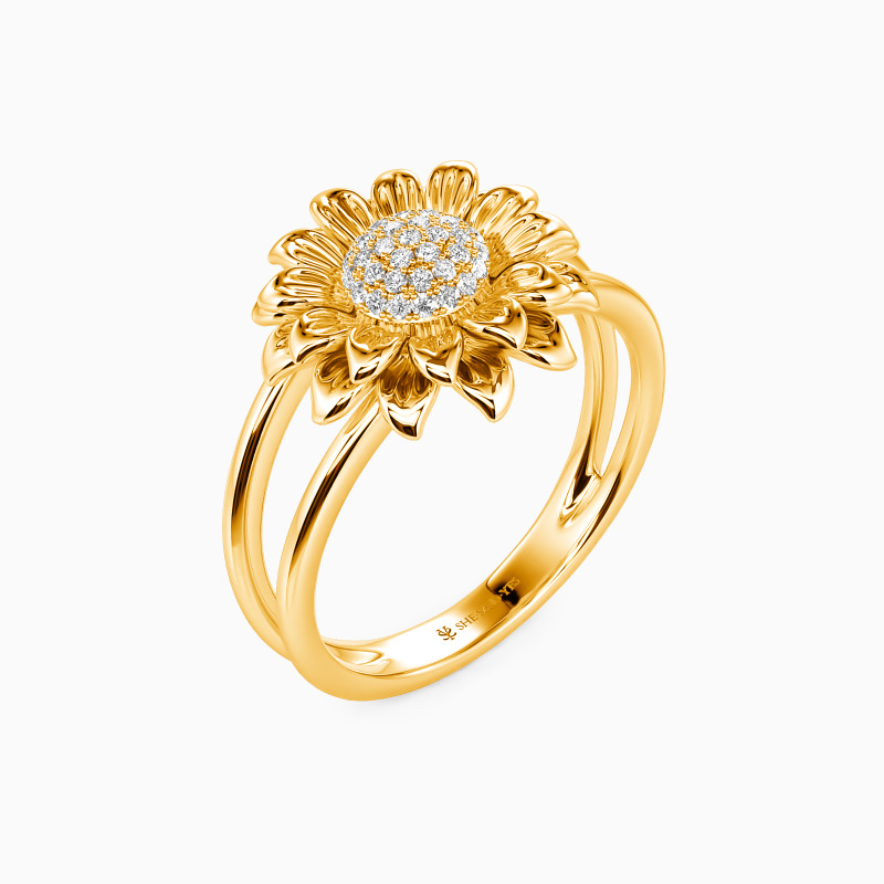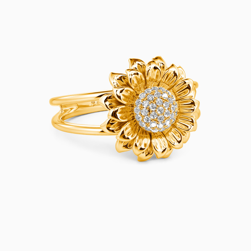 Add this exquisite floral ring to whatever you are wearing. It features a beautiful sunflower set on the split shank to evoke your natural appeal. Precious metal and vibrant inlaid accents add a splash of color to this trendy ring. Hope you can be bright sunny in your busy life with this ring.