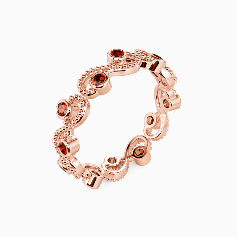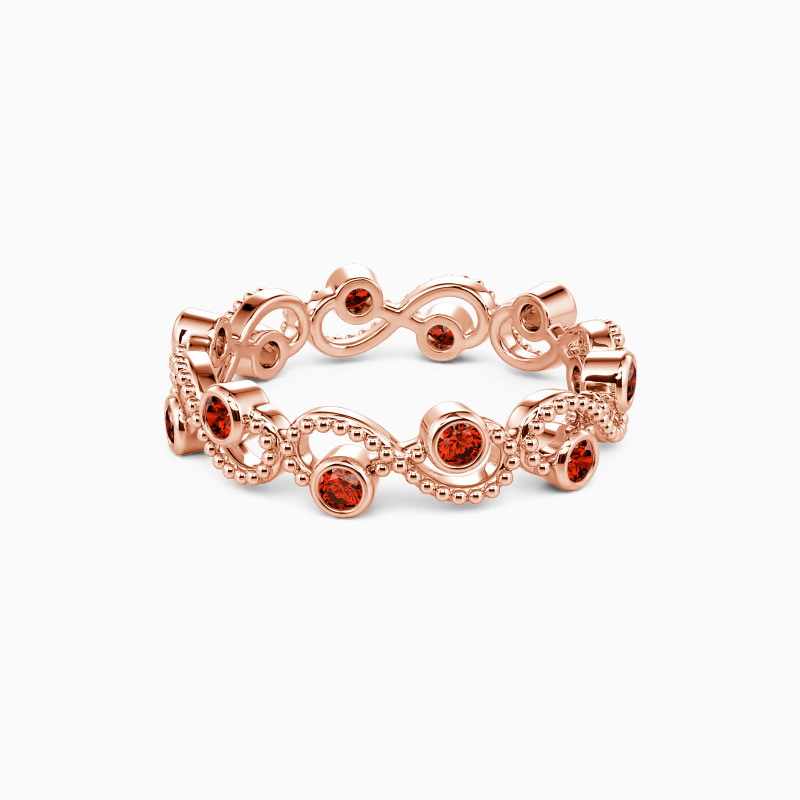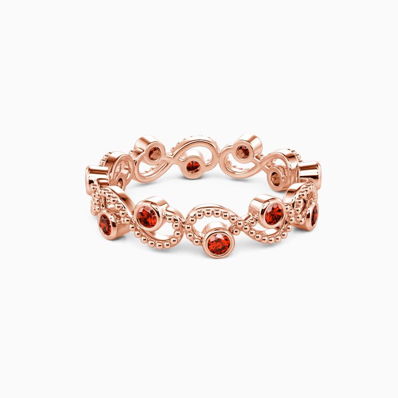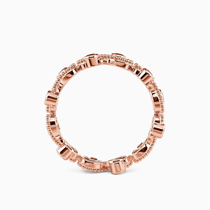 Take this chic eternity wedding band to make your fashion statement on the big day. Twisted design finishes this unparalleled style with shimmering round-cut stones in a bezel setting to bring you flawless brilliance. And the milgrain embellishments unveil vintage sense to match your attire. It is your ideal choice for stacking it with your engagement ring to complete an iconic bridal set.