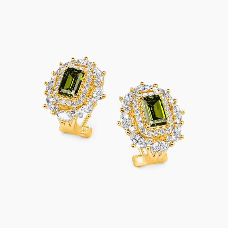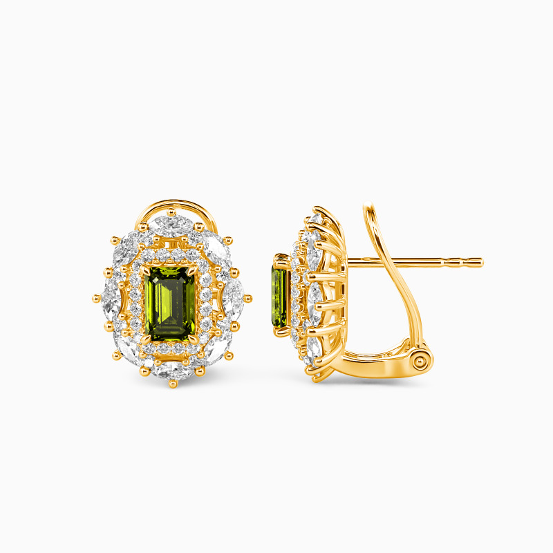 A luxurious look every lady will adore, these stud earrings are a fabulous choice anytime. Vintage-inspired, they feature a shimmering emerald-cut stone wrap in a halo frame of round-cut accents. And extra marquise-cut stones further enhance the appearance. This romantic choice is sure to become a treasured keepsake.